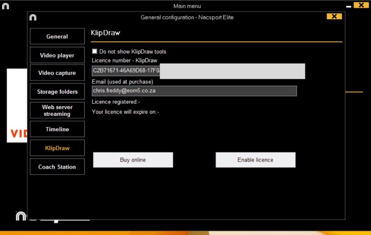Install KlipDraw license key with Nacsport software