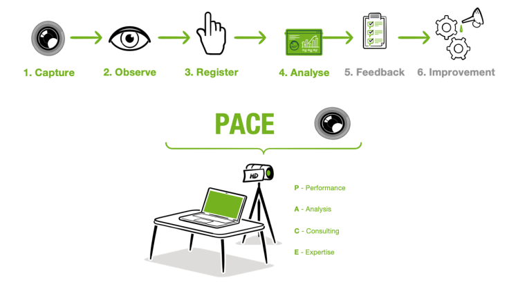 We have introduced a performance analysis consulting service to assist customers that do not have the capacity to perform all the steps needed in video analysis. We have identified a challenge facing a number of coaches, they only have the capacity to present to the team during the video feedback sessions and have limited time to perform all the workflow steps like video recording, coding and analysis. PACE addresses this problem as described as follows.