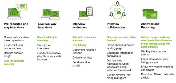 - Candidates creates video answering screening questions using their mobile devices and submit their videos to the interviewer